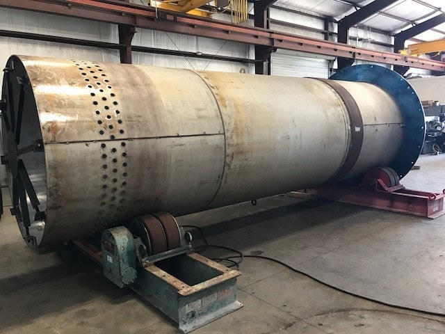 Fabricating new stainless-steel Rotary Cooler for Mineral Manufacturing.